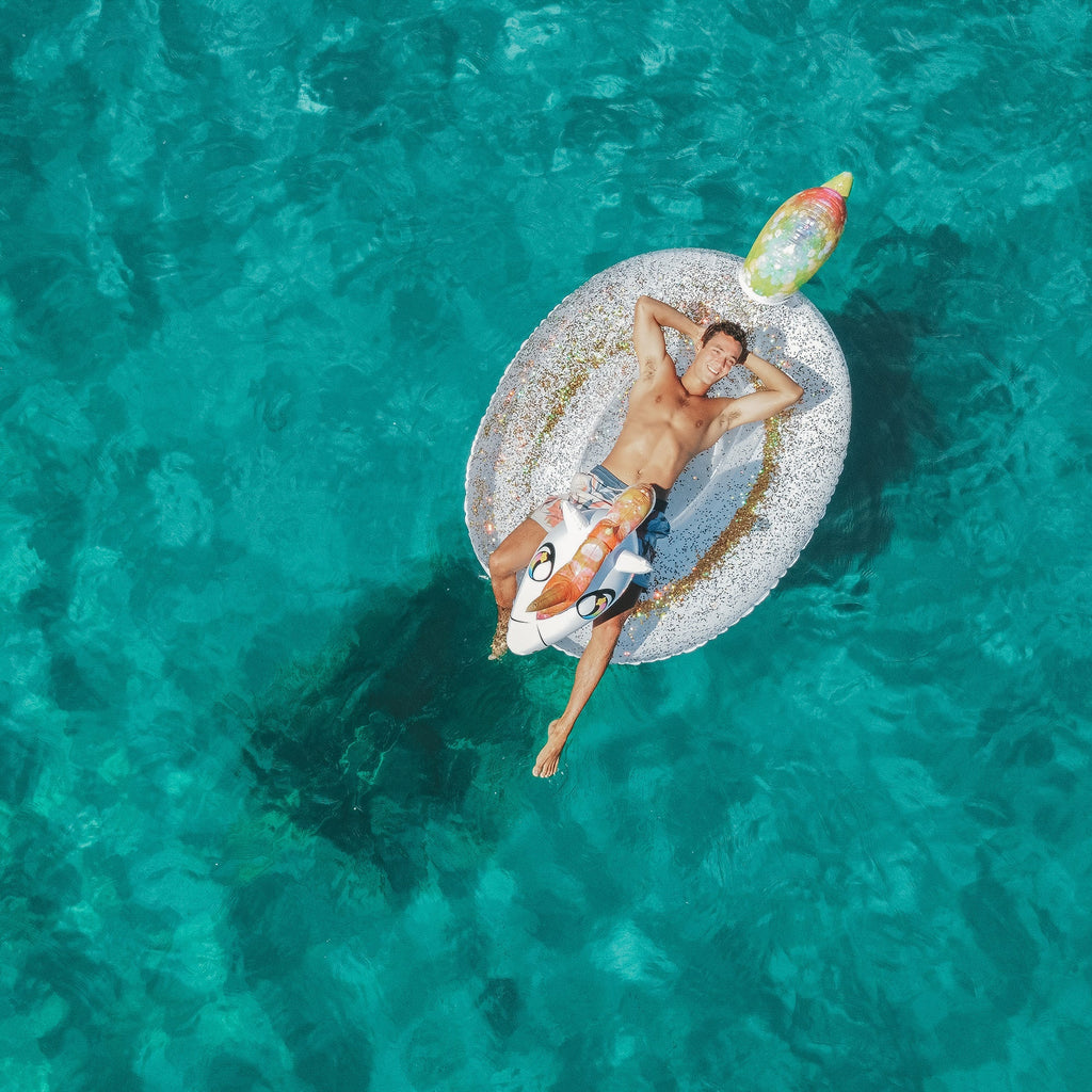 A boia Glitterfied® gigante é preenchida com glitter holográfico que brilha e muda de cor sob o sol!