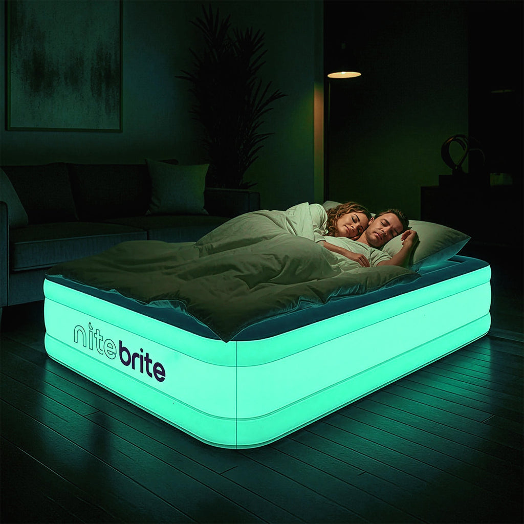 A Nite Brite™ Twin Air Bed, da AirCandy, transforma qualquer ambiente em um espaço de descanso com iluminação suave.